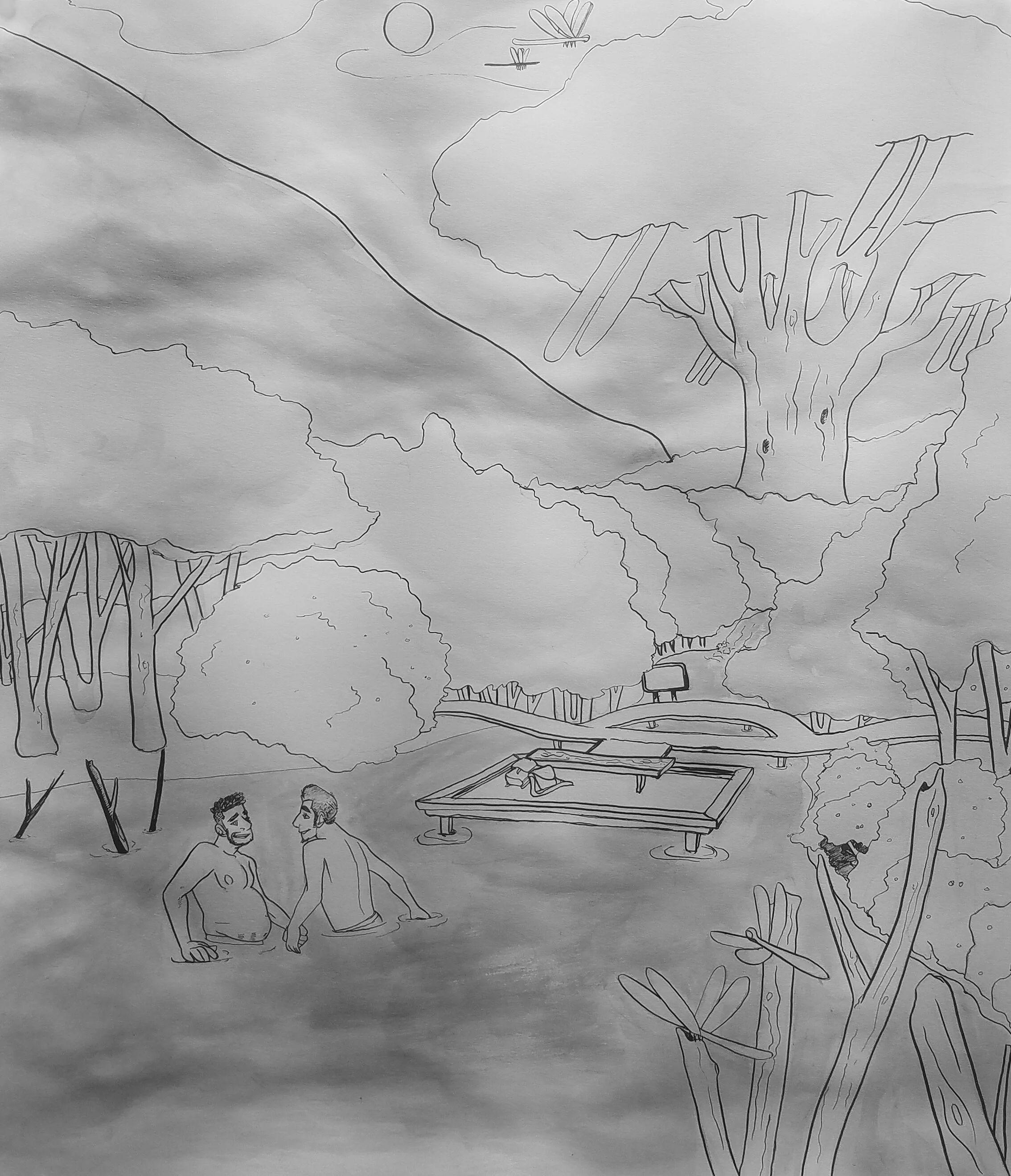 That Day with the Dragonflies (2019) | Ink and Inkwash on Paper, touched up digitally