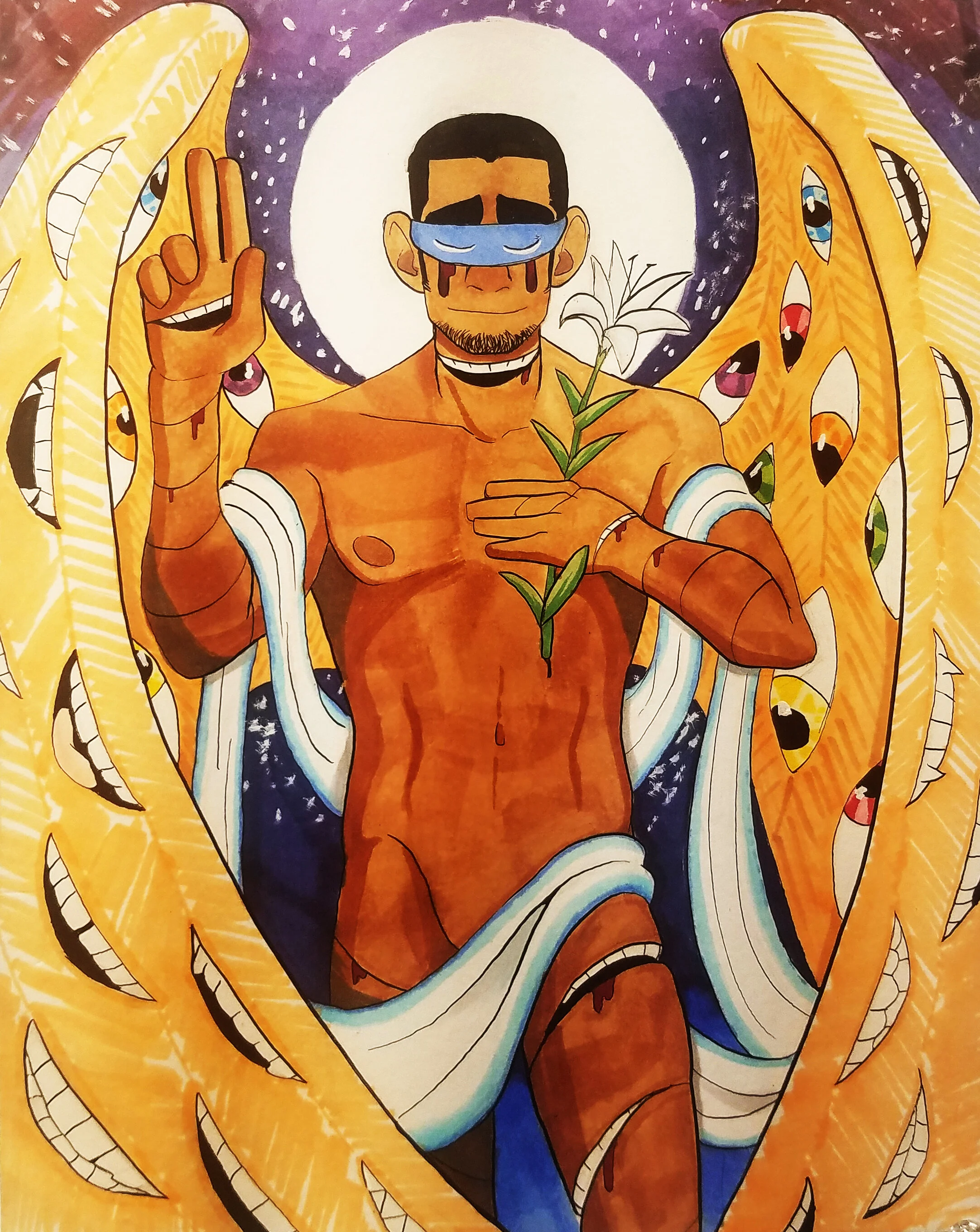 I wanted to appeal to both of those sensibilities, exploring Gabriel, the messenger archangel! Admittedly, this turned more into a design feature than a general composition, but I hope I treated the figure with enough respect that it has interest beyond just the monstrous fascination in the limbs and extra mouths.